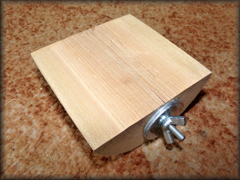 - Dřevěné stupátko asi 8 x 8 cm s matkou