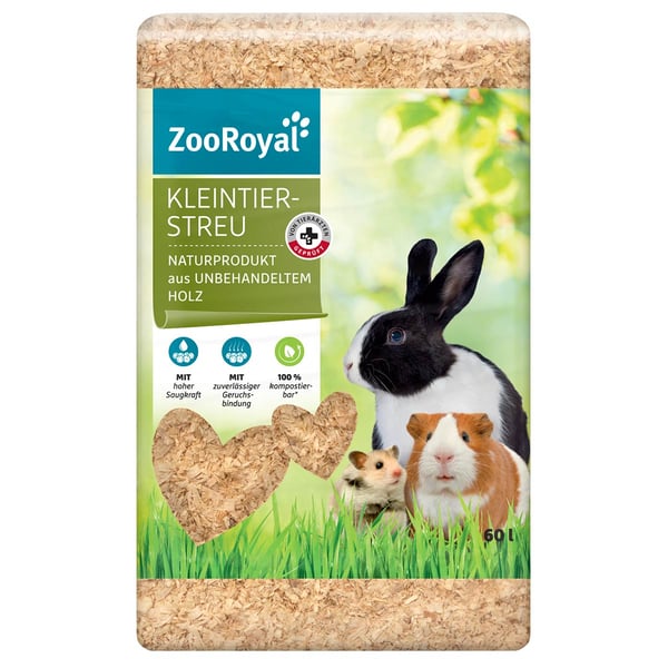 Podestýlka značky ZooRoyal pro malá zvířata je vhodná pro všechny druhy hlodavců a je 100% kompostovatelná*.